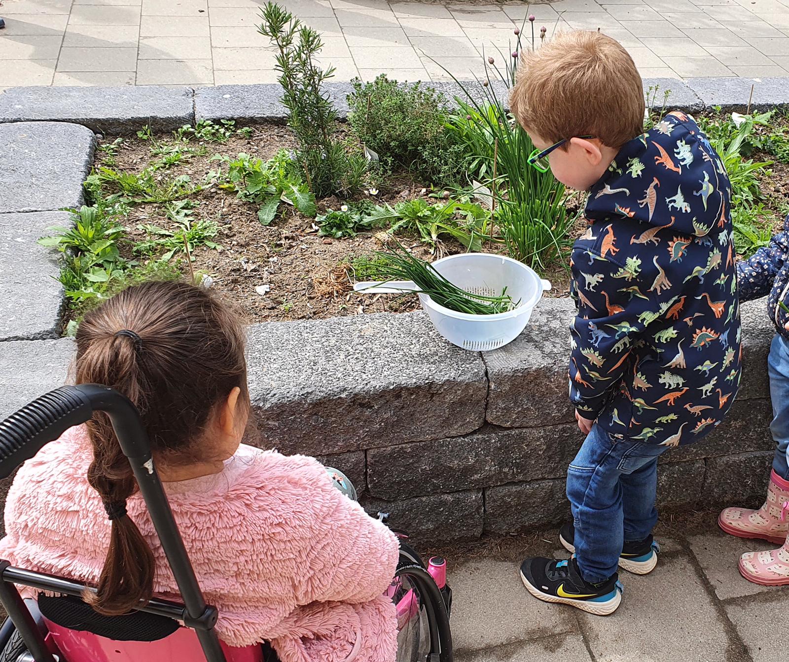 Gemeinsam verarbeiten sie ihr eigenes Obst und Gemüse, wodurch sich eine Wertschätzung für Lebensmittel und eine gesunde Ernährung frühzeitig in ihren Essgewohnheiten verankern soll.